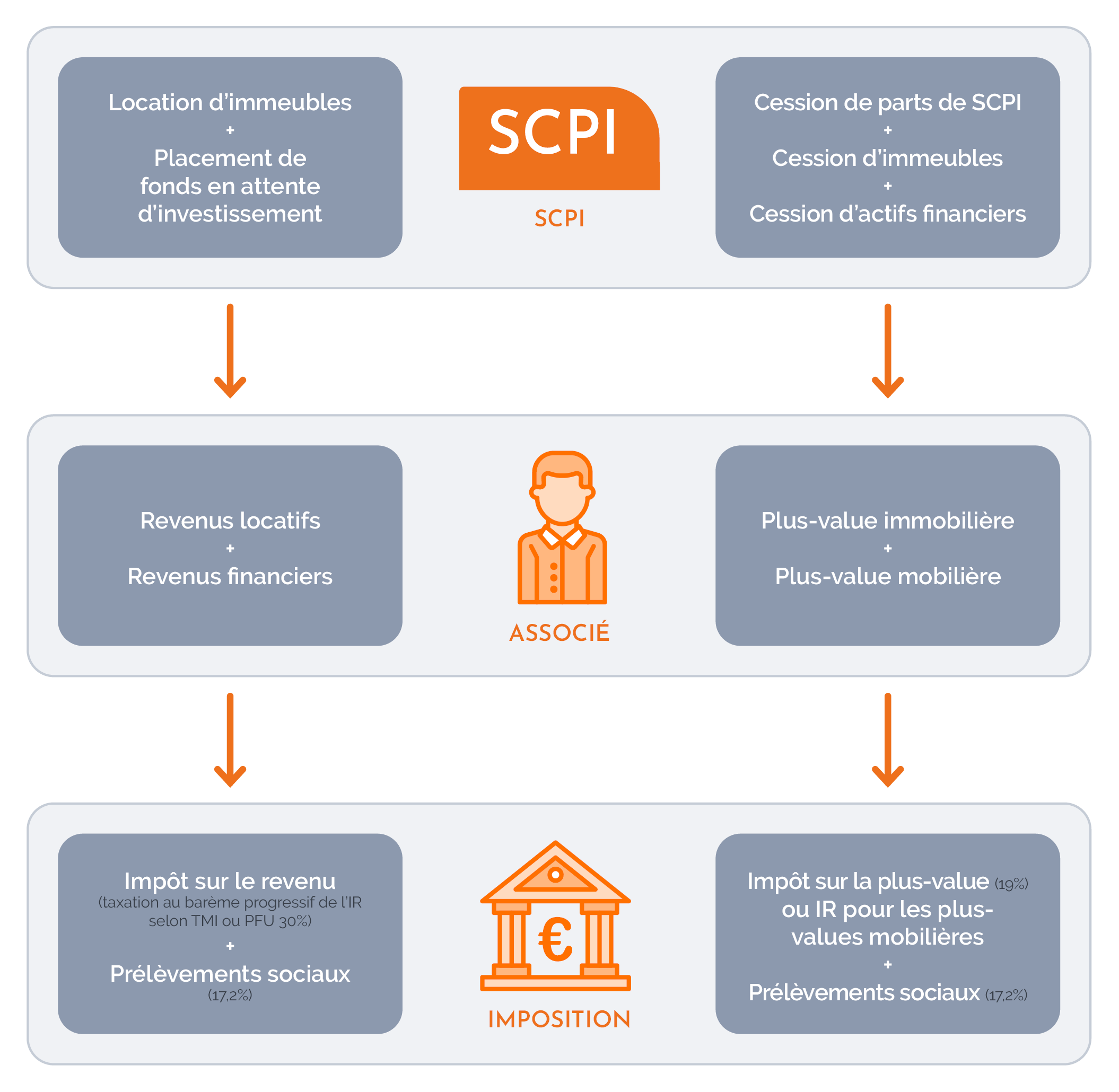 Toutefois, compte tenu de la transparence fiscale des SCPI, l’imposition se fera dans les deux cas au niveau des porteurs de part selon les règles suivantes :