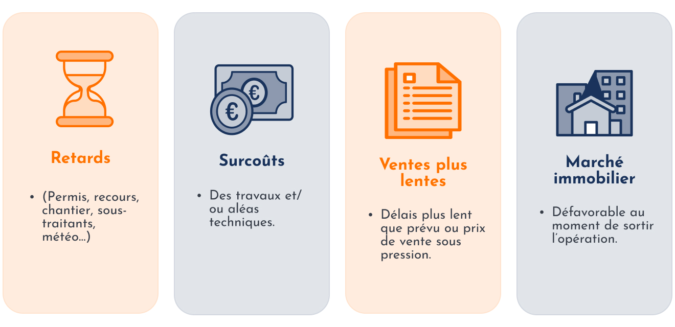 Si les choses se passent mal (retard, vente à prix inférieur qu’anticipé…), les investisseurs les plus juniors peuvent absorber une part importante de la perte avant les créanciers prioritaires.