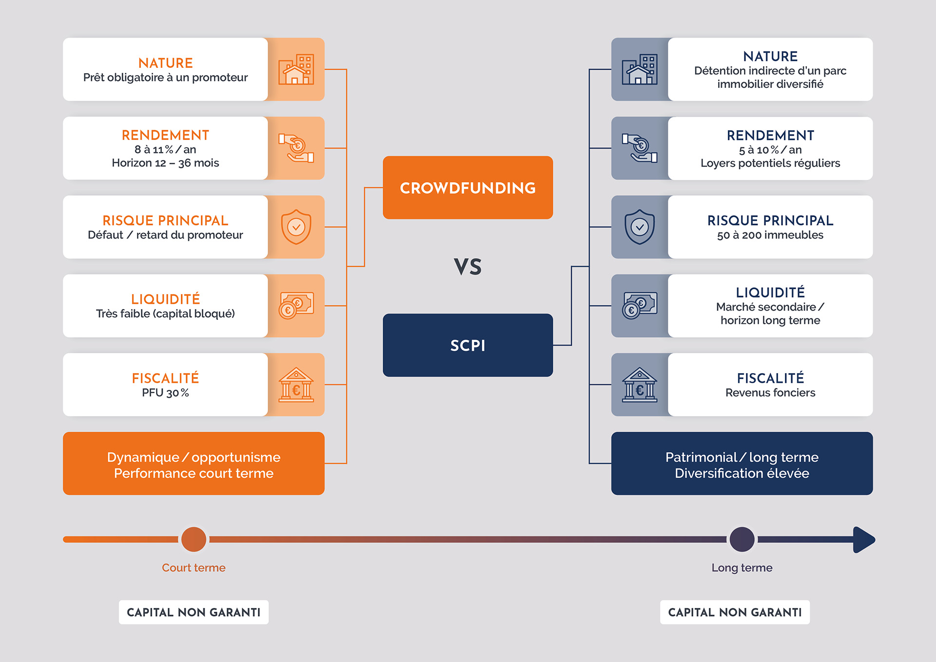 • Une diversification naturelle : des dizaines voire centaines d’actifs répartis géographiquement et par secteur, contre un projet unique dans le crowdfunding